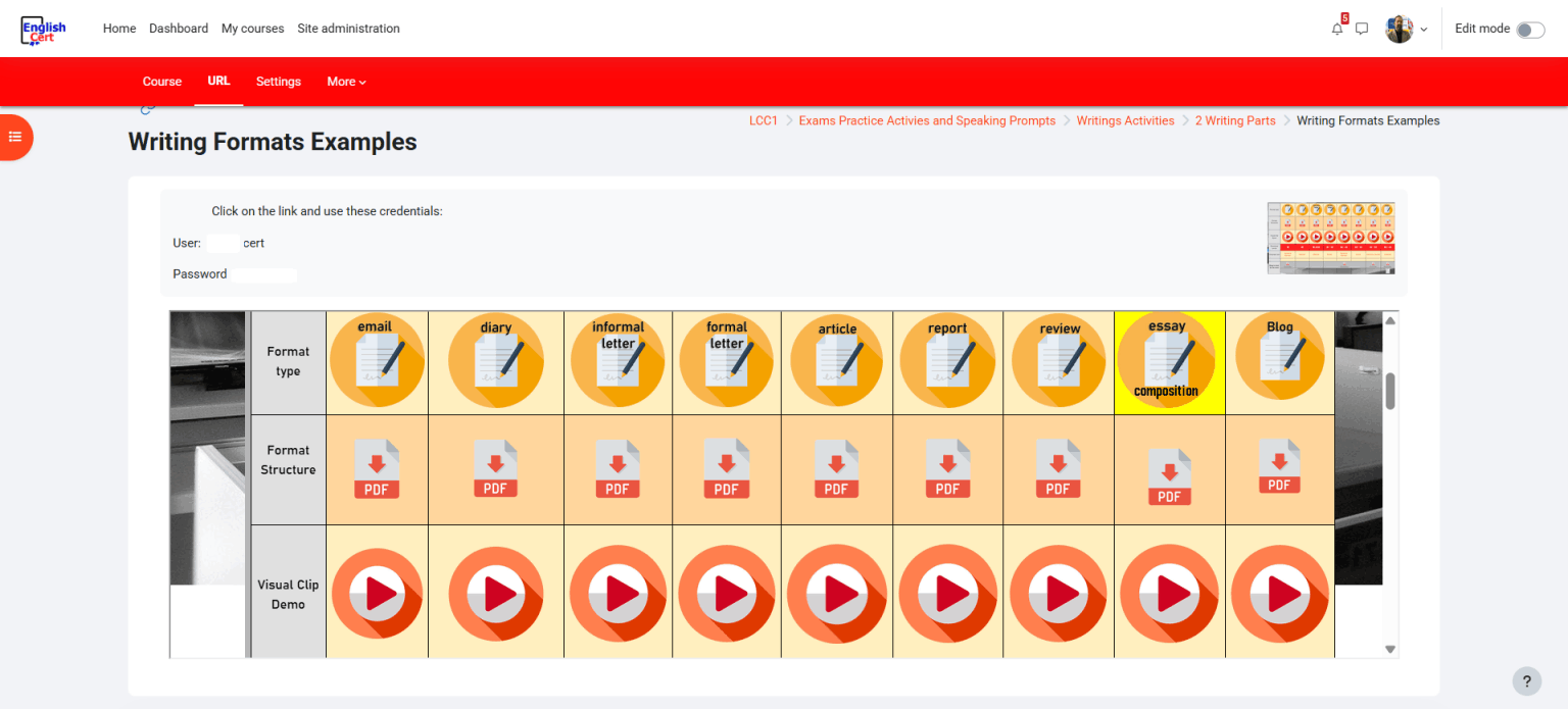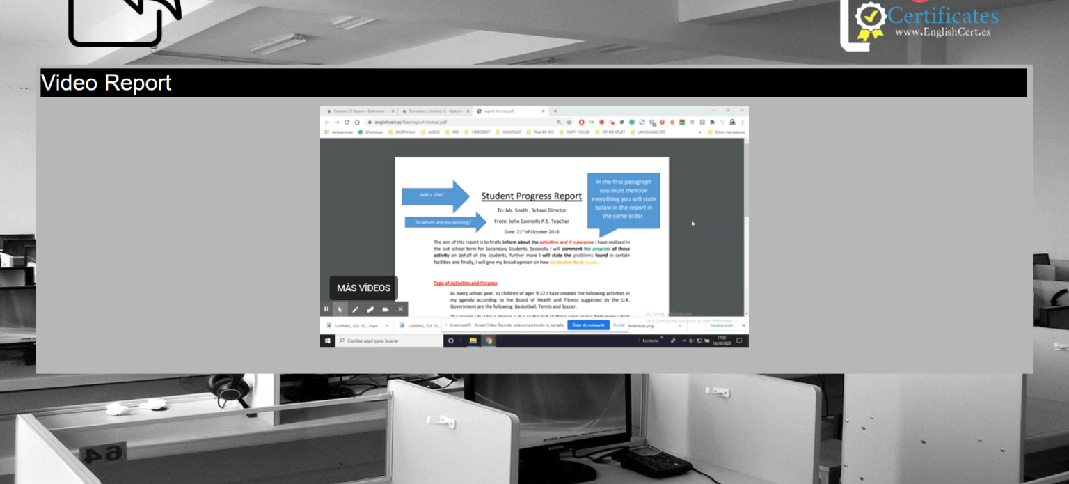 - Videos demostrativos sobre el examen.